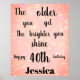 Pretty Pink Sparkle personalized 40th Birthday Add name Poster.