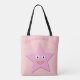 This awesome tote bag features a graphic image of a pink five pointed star with huge eyes and a big smile.