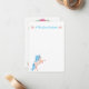 This pretty unicorn is decorated with a bright blue mane and a pretty horn. The back of the note card features a floral arch and tiny rose vignettes at the bottom. Personalize these cute notes with your own name.