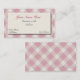Lovely and stylish business card template, done in a retro style plaid. A solid cream text area over the pink and cream plaid, has black and dark pink colored text. Personalize all the text to suit your needs.