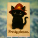 Pretty Please – Cute Black Cat with Wizard Hat Acrylic Sign