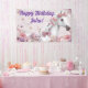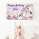 girls pony birthday banner, pretty horse party sign, custom pastel birthday banner, horse girl birthday ideas, cute pony party backdrop, personalized horse banner for kids, pink and purple party decor, girly equestrian party theme, pony party supplies for girls, magical horse birthday decoration