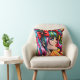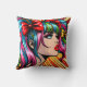 Pretty Pop Art Comic Girl with Bows Throw Pillow