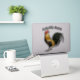 This humorous sticker has a graphic of a pretty rooster with a long green black tail. It is actually a very pretty rooster, that was taken from a vintage poster.