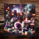 Pretty spiritual wall art with amethysts, candles, stones and gems and full of positive vibes!