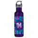 Pretty Purple and Teal Blue Floral Personalized Stainless Steel Water Bottle