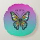 Pretty Purple and Teal Butterfly Personalized Round Pillow