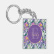 Pretty Purple Blue Florals Monogram Keychain