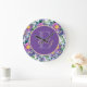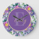 Pretty Purple Blue Florals Monogram Large Clock . The design has purple blue florals on a purple background . This beautiful Large Clock