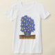 A bouquet of beautiful purple aster flowers inside a grey ceramic pot that sits on top of a wood table. Personalize this t-shirt by adding your own text, or delete it to leave it blank. Based on an original art piece by © One Artsy Momma.