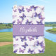 This pretty golf towel features purple butterflies on a white background, with customizable name in white text. You can edit the message to say something else if you'd like to change the message or add a last name. It's a stylish, cute gift for a golfer. It's a useful present for your mom, sister, grandma, or any lady whose hobby is playing golf.