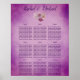 A beautiful seating chart, there is a purple background with lovely purple font and floral graphic. In the center is the couple's name followed by the couple's name elegantly scripted in purple cursive lettering. Underneath are templates for inserting guests names at their assigned tables. Shop the whole collection for matching items.