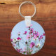 Pretty pink flowers in a spring meadow against a bright blue sky.