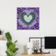 A pretty purple, lilac, and green pattern of concentric circles that form overlaying hearts. More circles border the design. A unique and creative design. Great for teen girls or anyone who loves hearts. A great way to express your love, or show appreciation of your marriage or anniversary.