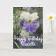 Glorious Purple Iris Flower Photo Birthday Card, with a fully customizable name. A gorgeous card, its left blank inside so you can add your own message. Designed from one of my original iris watercolor paintings.