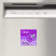 Stylish dishwasher magnet, in a purple and white polka dot pattern, and a solid purple, with the white text reading Clean, on one half of the magnet and black text reading dirty, on the other half. Pretty graphics of a purple ribbon, across the middle is decorated with a purple flower and a sweet little purple ladybug. Makes a great hostess gift.