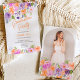 Having your Pretty Purple Orange Floral Script Graduation Invitation match the theme of your party is a great detail that your guests will appreciate. The thoughtfulness of a consistent party theme is often appreciated and can show your guests that you can host a cohesive event.