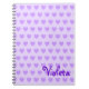 Cute lavender and bright violet purple personalized girly heart pattern. A cute, whimsical font style for her name aligned to the right side of this blank notebook. You can choose from many other girly handwriting or calligraphy styles in the system. Create your own custom design for her! This is one of our older designs. We can transfer it to other gifts for you.