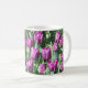 Enjoy your favorite hot or cold beverage in this large style coffee mug that features a wrap-around photo image of a garden of pretty, purple Tulips. A lovely, floral design for spring or any time of year!