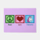 Peace Love Unicorns gift with a peace sign, heart, and a beautiful unicorn with a purple mane.
