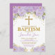 Pretty Purple Watercolor Floral Girl Baptism Invitation