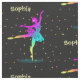 Beautiful rainbow colored ballet dancers dancing in the spotlight, covered by colorful polka dot spots. Fabulous fabric for a dance lover; available in a choice of fabric styles and lengths to suit all your craft and sewing needs. Best of all you can customize it with a personal name.