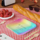 This pretty rainbow gradient wedding paper plate is beautifully simple and colorful. Cute color fade decor for an LGBTQ couple to use as reception favors for a gay pride wedding with a light and cheerful theme this summer.