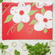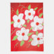 Stylish tea towel with white flowers accented in green and red. The white flower can be changed to any colour to match your decor.