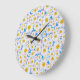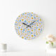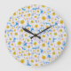 Pretty Round Wall Clock: Ditzy Daisies on Blue Large Clock