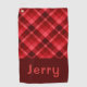 Pretty Ruby Red Plaid Monogram Golf Towel