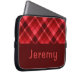 Pretty Ruby Red Plaid Monogram Laptop Sleeve
