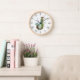 Wood framed wall clock features rustic wood letter J monogram with watercolor eucalyptus and lavender embellishment. Perfect for bedroom or Livingroom walls.