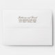 Expectations met; I liked that I had the opportunity to include our address on the back of the envelope. This color matched very well with my save the date. The color was the same as shown above. I had our address labeled on the back of the envelope and the font/printing met my expectations.