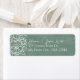 On a textured sage green background, white lettering and artful white flower and leaves decorate these return address labels, perfect for your wedding or any occasion. Whimsical, unique artwork & design by Tuzi Williams.