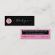 Modern black background with a pink girly design. Thank you insert business card discount promotion. Elegant signature script font. Press the "Personalize" tab to add your logo on the front and email/social media on the back.