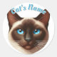 Pretty Siamese Short-Hair Cat plus Name Classic Round Sticker