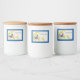 This custom label for a food jar has a pretty little blue and red singing bird on a branch with bright yellow flowers on a white background with a blue border. Customise your text with the template.