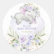 Pretty Sleeping Elephant Purple Floral Greenery Classic Round Sticker
