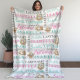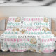 Beautiful sloths illustrations with custom name and last name collage pattern fleece blanket. If name and last name are long, it can easily be adjusted buy clicking the "edit design" tool. But if you have a hard time adjusting, don't hesitate to drop me a message with the link to this item and I will be happy to assist you.