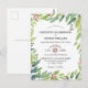 This pretty spring greenery wedding invitation postcard is so fresh and sweet. The design features bright flowers in pink and blue with botanical greenery accents that frame the wedding invite postcard. So sweet and elegant for your event.