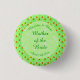 This button is designed for the Mother of the Bride. The design features a pattern of pretty pale pink apple blossom flowers. They are 2 different shades of pink and all have a yellow middle. They are ideal for a Spring Wedding and are mixed amongst apples. Each apple is green with a red blush on one side and a small brown stalk.