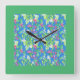 Pretty Square Wall Clock, Spring Blossoms, Green Clock