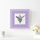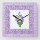 Pretty Square Wall Clock Violets and Check Gingham