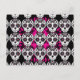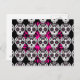 Super cute Day of the Dead sugar skull pattern in hot pink, black, and white. Shown here on a post card. Great for Halloween too. This is my own pattern and design.