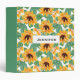 Personalized binder with a cute summery pattern. Pretty yellow sunflowers surrounded by green leaves in a repeating pattern.
