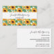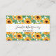 A business card with a cute summery pattern. Pretty yellow sunflowers surrounded by green leaves in a repeating pattern.