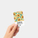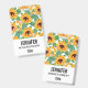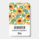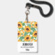 A name tag with a cute summery pattern. Pretty yellow sunflowers surrounded by green leaves in a repeating pattern.