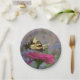 This paper plate features a beautiful swallowtail butterfly gathering nectar from a pink zinnia blossom.