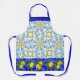 Bright, pretty Mediterranean tile print apron - bright cobalt blue, yellow, light blue with lemons in the style of tile and linen art from Positano Italy. Practical gift for someone who loves to cook.