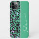 Pretty Teal Leopard Pattern Background Custom Name iPhone Case